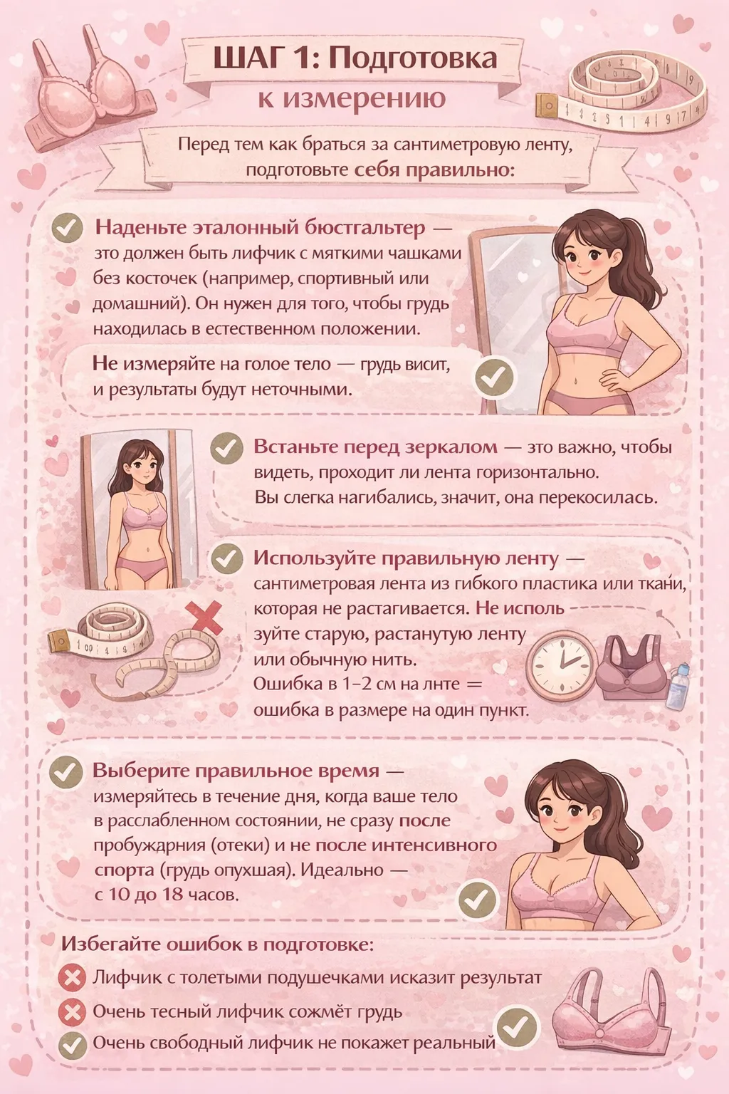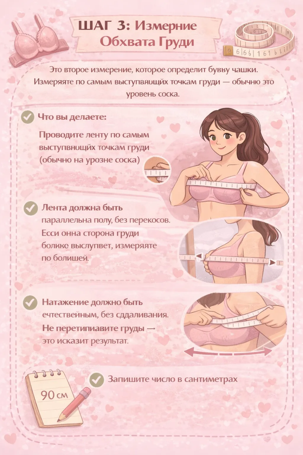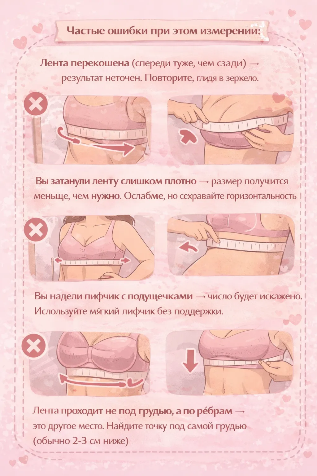 - ❌ Вы измеряете поверх лифчика с толстыми подушечками