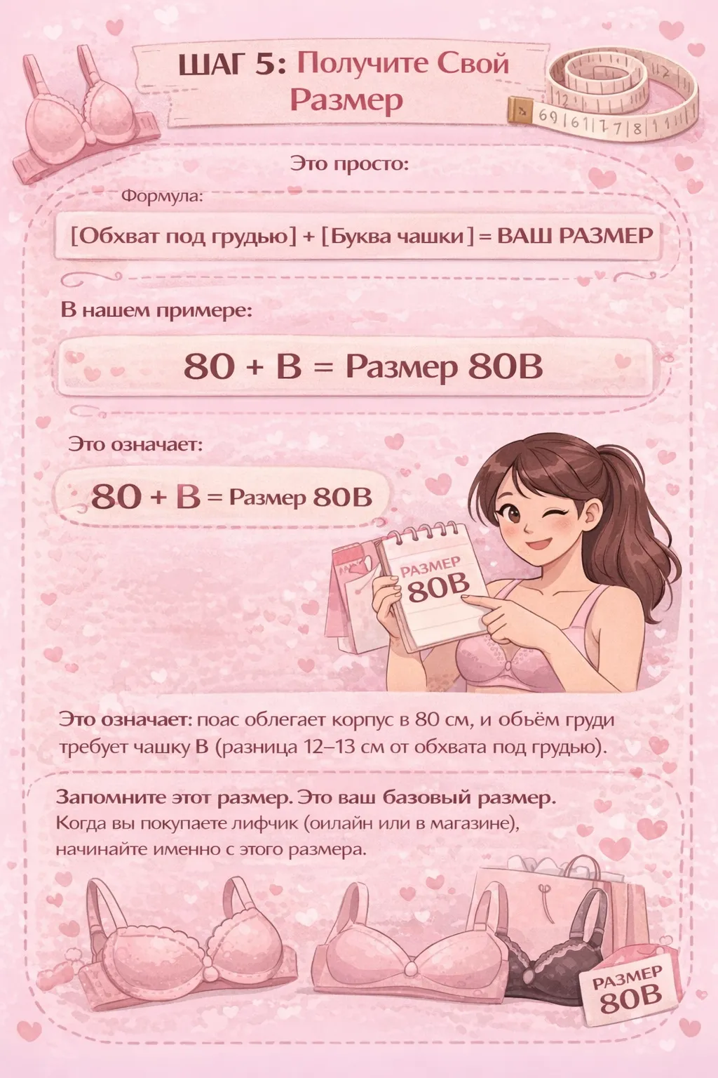 Проблема не в качестве белья и не в вашей фигуре. Проблема в том, что никто не объяснил вам, как правильно определить свой размер. Система размеров лифчиков кажется сложной только с первого взгляда. На самом деле это просто математика: два замера, одна формула, и вы получаете точный результат.